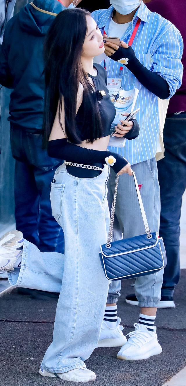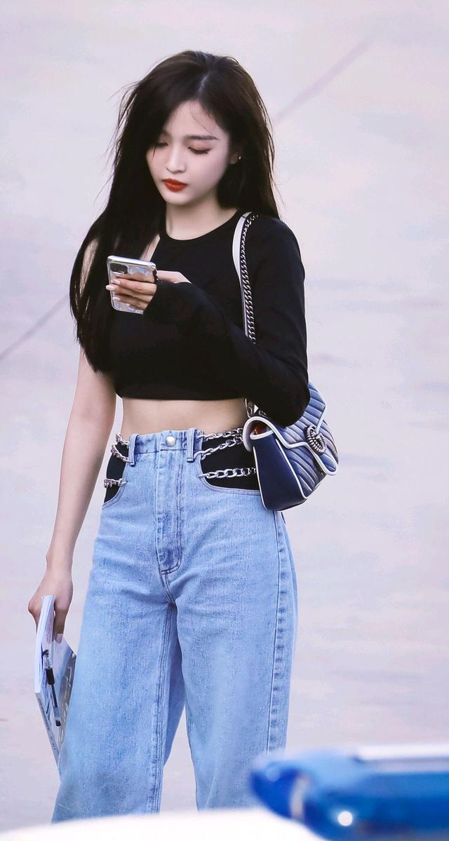 吴宣仪不仅人长得甜美,笑起来更甜,再加上她很会穿,把整个人衬托得活力四射,浑身上下散发着无限的魅力,身穿一件黑色短款上衣搭配一条蓝色牛仔裤,简约又时髦,不得不说被她美到了。
