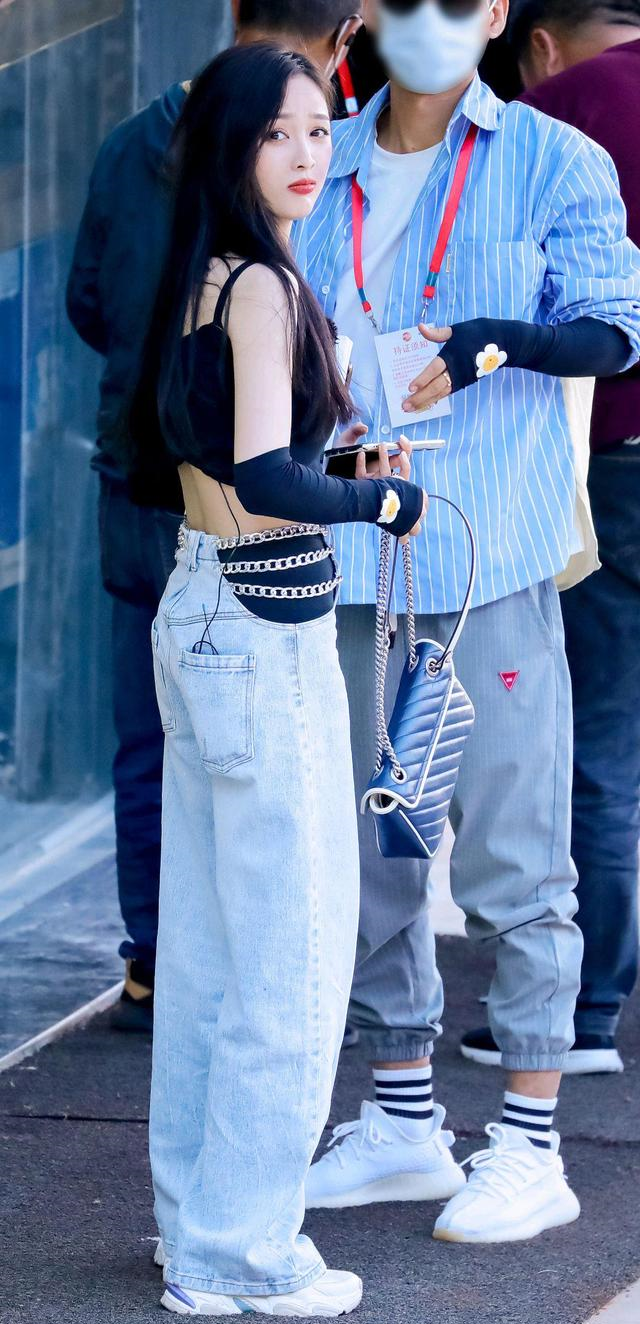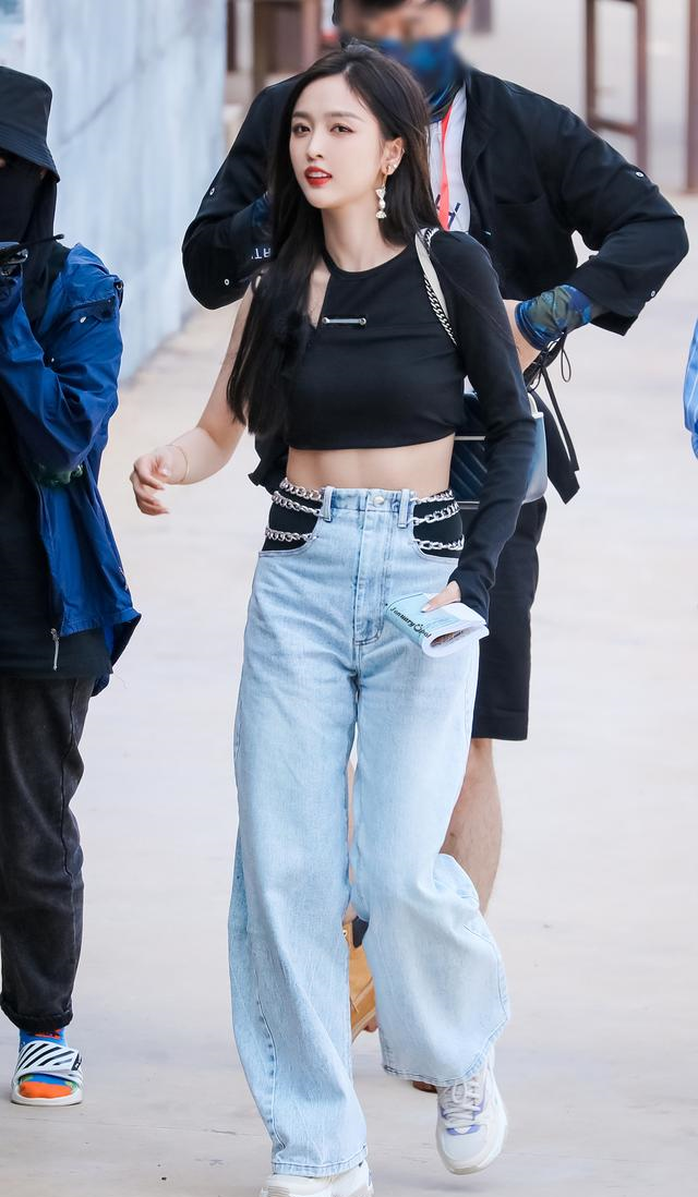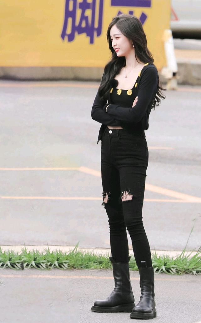 吴宣仪果然拥有好身材就是任性,很轻松的就把短款的服装穿出高级感,这样的穿搭造型,一般人不敢挑战,她身上穿的这件黑色上衣是短款的设计,如果没有绝对的好身材,不要轻易的去尝试这类似的服装,一不小心可能会穿出很尴尬的场面。