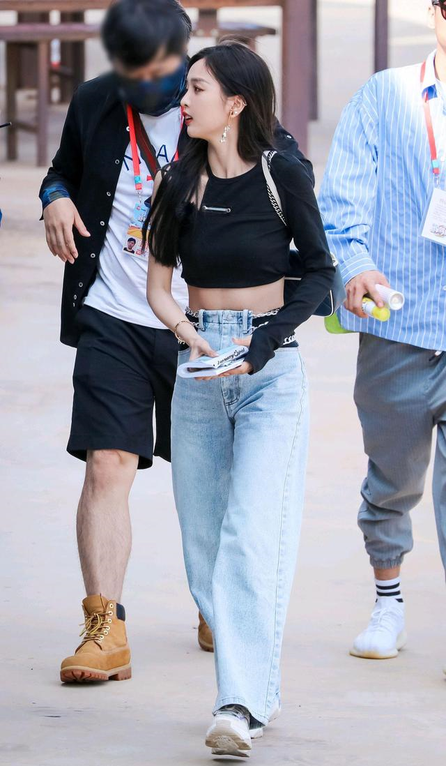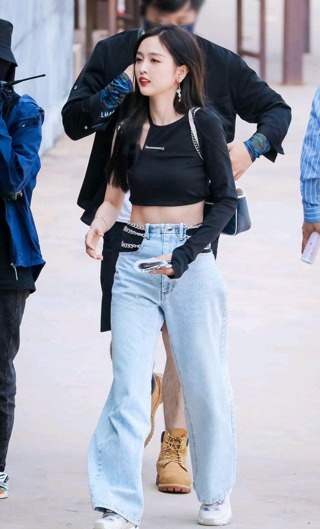 吴宣仪知道自己的身材很纤细,所以,一般情况下她都会搭配出腰线,并且提高腰线,很轻松的就秀出好身材,而且吴宣仪的个子并不算很高,但是她提高腰线之后,很自然的就拉长她的腿部线条,看上去显高又显瘦。