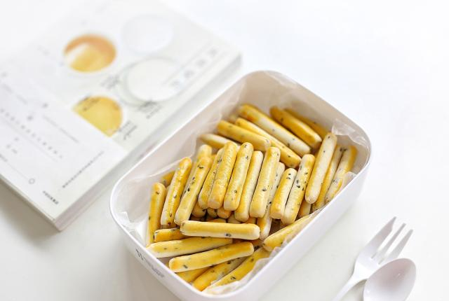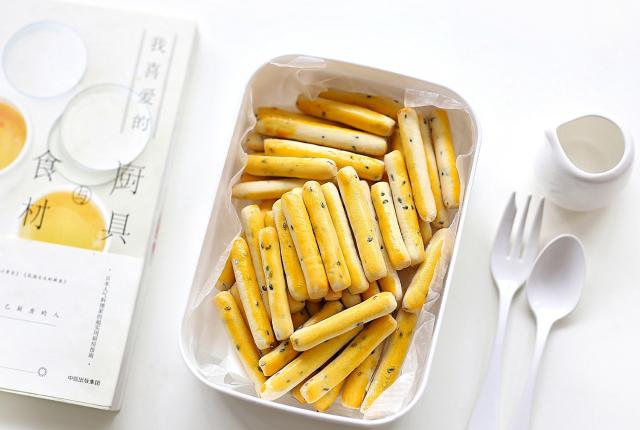【豆腐手指饼干】所需食材:老豆腐90克、低筋面粉170克、糖粉40克、熟的黑芝麻6克、鸡蛋1个、蛋黄1个1、先将豆腐放在烧热的水里焯烫3分钟,焯水的目的是为了去除豆腥味,另外最好用老豆腐,因为老豆腐含水量少,如果用含水量大的嫩豆腐来做的话,会导致面粉的用量增加,从而让成品吃起来口感过于扎实,且没有豆香味。