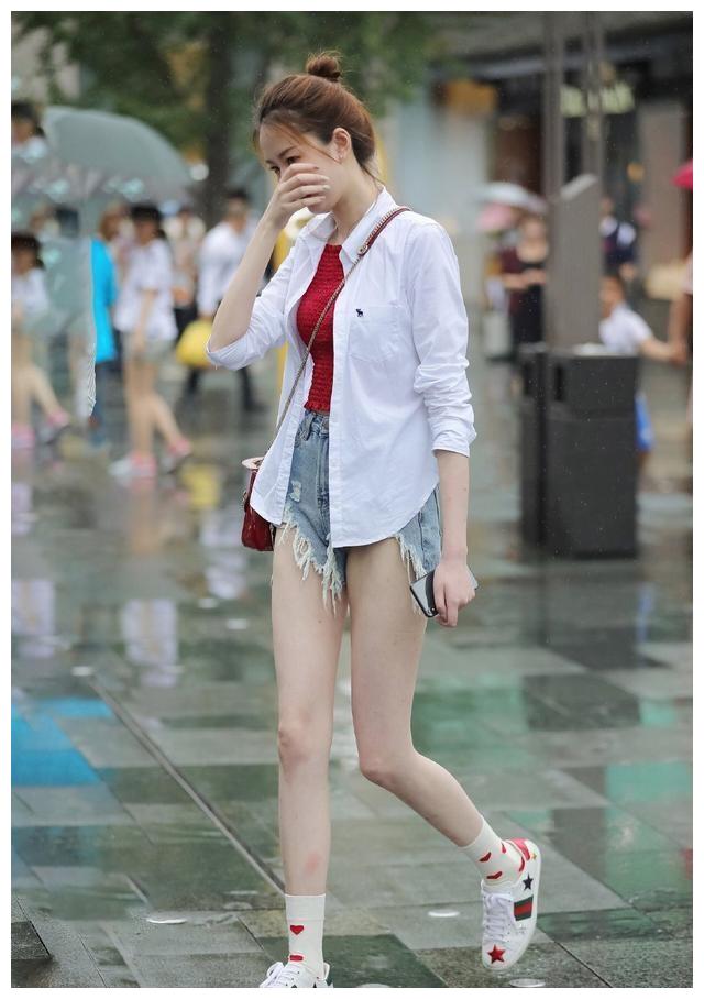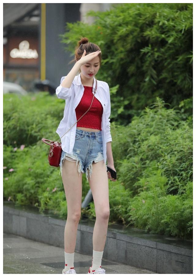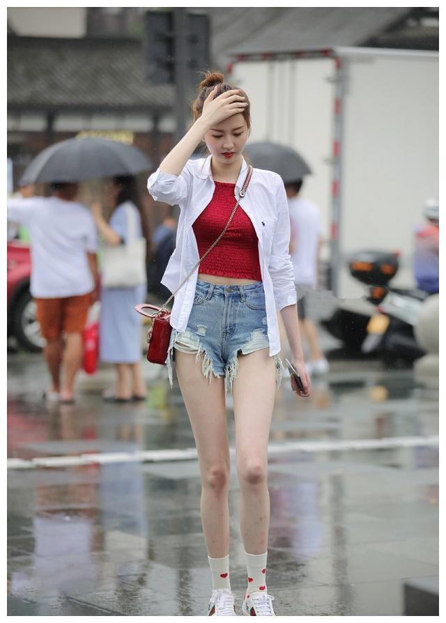 这个美女选择了黑色的短裙,裙子加上白色的波浪元素,营造出鲜明的黑白效果。裙子采用喇叭袖和妈妈裙的设计,提供了丰富的细节。美人画是红色尖头鞋,这种搭配形成两种冲突色彩风格的搭配,以黑、白、黑三色来支撑波浪元素更为合适。(莎士比亚,坦普林,美丽)。